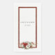 This romantic and classic Christmas or winter-themed design features clusters of vibrant red and white winter flowers, pine, holly berries and rustic twigs and editable text fields surrounded by a rich red damask border with gold edges.