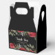 Pretty birthday favor box with red flowers and green foliage. The words can be changed to suit your own details or requirements. Would be perfect for a sweet sixteen birthday party.
