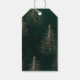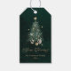 Celebrate the season with timeless elegance using this beautiful gift tag. The design showcases a watercolor Christmas tree with wrapped gifts against a dark green background and accented with shimmering gold details. A perfect finishing touch for your Christmas presents or handmade holiday items.