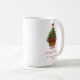 Enjoy your favorite holiday drinks in this charming Christmas mug featuring a beautifully illustrated mini Christmas tree in a woven basket, decorated with red berries and a classic red bow. The clean white background and festive colors make it the perfect mug for cozy winter mornings, hot cocoa nights, and Christmas gatherings.