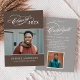 Mit dieser eleganten Script-Abschluss-Ankündigung und Party Einladung kündigen Sie Ihren Uni- oder Highschool-Abschluss in stilvoller Form an. Die zweiseitige Karte verfügt über zwei Fotos des Absolventen, benutzerdefinierte Weißtexte und Akzente in kalligrafischen Schriften. Braune und graue Hintergrundfarben können so verändert werden, dass sie sich mit Ihren Foto- oder Schulfarben abstimmen.