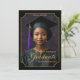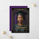 Celebrate a milestone moment with this elegant "Class of 2026" portrait-style graduation announcement. Featuring a dramatic black background, refined gold accents, and an ornate frame design, this vertical layout showcases the graduate’s photo in a timeless, formal presentation. Personalized with the graduate’s name, school, and class year, this design creates a polished keepsake perfect for honoring high school or college achievements. Ideal for sharing with friends and family, this sophisticated graduation announcement highlights pride, accomplishment, and the beginning of a new chapter. Back Background is dark purple.