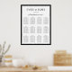 12 TABLE - This wedding seating chart features an elegant black border over a classic white background with vintage inspired typography. All of the text is customizable. Click the "personalize" button and use the design tool to enter guests names. The default size is 24 x 32 inches but 18 x 24 also works great without having to adjust the frame.