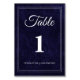 This elegant 3.5"x5" wedding table card features a rich navy blue textured background with refined white typography for a timeless and formal look. Designed to be printed on both sides, the card displays a graceful script table title paired with a classic serif table number for easy visibility from any angle. A double-line border adds a polished finishing touch, while the couple’s names at the bottom provide a cohesive, coordinated detail. Perfect for formal, black-tie, and traditional weddings, this table card complements a classic navy and white wedding décor theme and pairs beautifully with matching signage and stationery.