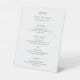 Elegant wedding menu pedestal sign featuring a simple and classic design with traditional serif and elegant script fonts.