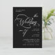 Eine elegante Schwarz-Weiß-Einladung mit romantischer, Wirbler Kalligraphie-Schrift mit optionalem Text auf der Rückseite. Ideal für jede Jahreszeit. Für eine weiter gehende Anpassung dieses Designs klicken Sie bitte auf den BUTTON BLAU DESIGN TOOL oben!