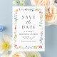 Set the tone for your upcoming wedding with this floral save the date card, featuring a watercolor frame of blooming wildflowers in shades of pink, yellow, orange, and blue with delicate greenery surrounding the couple’s names, wedding date, and location. The soft botanical border adds a romantic and timeless feel while keeping the design light, airy, and easy to read. Perfect for garden weddings, spring and summer weddings, and couples who love elegant floral stationery, this save the date creates a warm and inviting first impression. Personalize the design with your names, date, and location to create a charming announcement that coordinates seamlessly with matching wedding invitations and stationery.