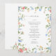 Add a romantic, garden-inspired touch to your reception tables with this elegant wildflower wedding menu card. Featuring delicate watercolor blooms in soft blush, blue, and golden hues at the top and bottom, this design beautifully frames your menu selections with timeless floral charm.