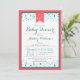 Diese elegante, formale Korallenrosa, Aqua Blau, Weiß Konfetti niedliche Baby Dusche Einladung. Kann für Baby- oder Mädchenduschen angepasst werden. Das perfekte Jahr für das ganze Jahr, laden die klassischen Gäste zum Frühling, Sommer, Herbst oder Winter-Babyduschen ein.