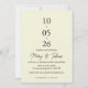 A modern minimalist wedding invitation featuring a soft creamy white (blanc cassé) background and elegant typography. The vertical date layout creates a unique and sophisticated design that is perfect for contemporary weddings. This timeless invitation combines simplicity and elegance, making it ideal for couples who love clean and refined aesthetics.