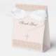 Personalize this Christian baptism favor box to create a memorable keepsake for your little one’s special day. The design features a cross in elegant soft beige pearl graphics, complemented by delicate beige lace and pearl details against a soft pink-beige background. Perfectly minimalist with a vintage look, it beautifully suits christening, simple baby dedication, or faith-filled day celebrations. The mocha brown typography and script font add a timeless, charming touch. Ideal for favors to say thank you to your guests, this favor box is a meaningful way to celebrate your child’s baptism and share a treasured moment of faith. Be sure to see the collection for matching items to complete your coordinated look.