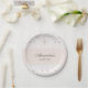 Personalize this Christian baptism paper plate for a truly memorable, faith-filled celebration. The design features a delicate cross in elegant soft beige pearl graphics with white lace and pearl graphic details, set against a soft pink beige background. A minimalist yet graceful style makes it perfect for a christening, simple baby dedication, or baptism with a touch of vintage charm. The mocha brown colored typography and flowing script font adds warmth and elegance to the design. These paper plates beautifully blend timeless details with a refined, classic look, making them an ideal choice for your sacred occasion. Be sure to see the collection for matching items to complete your coordinated look.