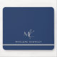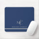 Elegant Custom Silver Monogram Navy Blue Mousepad