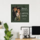 An elegant wedding invitation featuring a romantic illustrated couple framed by delicate florals on a dark, sophisticated background. Perfect for classic, modern, or romantic wedding themes. Fully customizable with your names, date, and event details.