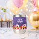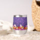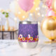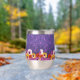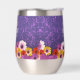Machen Sie Ihren besonderen Tag zu einem unvergesslichen Fest mit diesem blühenden Edelstahl-Edelstahl-Edelstahl-Edelstahl-Edelwein-Tumbler, der mit eleganten weißen Schriftzeichen mit lavender lila Konfetti und farbenfrohen afrikanischen Molkereien auf einem violetten, lila-schwarzen Hintergrund. Passen Sie die Namen der Neuvermählten, das Hochzeitsdatum und/oder die Gratulationsbotschaft an. Umkehrung zeigt identisches Design. Design © W.H. Sim. Weitere Informationen unter zazzle.com/expressionsoccasions