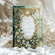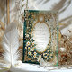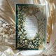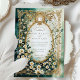 Diese luxuriöse Hochzeitseinladung präsentiert eine harmonische Mischung aus Eleganz und Natur mit aufwändigen Imitaten, vergoldeten Details, gepaart mit zartem Weiß und üppiger Vegetation. Die Vorderseite ist mit einem ausgeklügelten Gewölberahmen-Set ausgestattet, das sich durch einen Farbverlauf von smaragdgrünen und weichen Cremetönen auszeichnet und zeitlosen Charme und Grandeur ausstrahlt. Das hintere Design ergänzt die Vorderseite mit einem verzierten, goldfarbenen, barocken inspiriert Motiv, das mit einem minimalistischen Monogramm zentriert ist. Diese Einladung eignet sich ideal für romantische, formelle oder gärtnerische Hochzeiten und bietet ein perfektes Gleichgewicht zwischen Opulenz und Bio Schönheit.