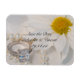 Passen Sie die hübsche Elegant Daisy Wedding Save the Date Magnet mit den persönlichen Namen der Braut und Bräutigam und spezifischen Ehezeremonie Datum, um Ihre bevorstehenden Nuptials bekannt geben. Diese wunderschöne botanische Hochzeit behalte den Datums-Magneten mit einem digital verbesserten Blumenfoto aus weißer Blume-Blüte, weißer Perlenhalskette und viereckiger Diamant-Verlobung-Ring.
