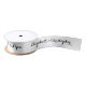 Erstellen Sie Ihre eigene, personalisierte, elegante schwarze Typografie / Drehbuch danke, weiß Farbband, in seidig glänzend glänzenden Satin und gerippt texturierte starke rosgrain Optionen. Geben Sie einfach Ihre Notiz / Gruß / Wünsche, und Braut & Bräutigam Namen, um anzupassen. Elegantes Dankband für das Verpacken von Geschenken & Favoriten für Ihre Lieben, Freunde und Familie, für Hochzeiten, Jubiläumsfeiern, Empfänge, Zeremonien, oder andere besondere Anlass.