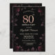 Elegant Dark Burgundy Rose Black 80. Geburtstag Einladung