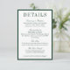 Elegant Dark Green Minimalist Wedding Details Begleitkarte
