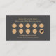 Elegant fully customizable loyalty card template for hair salons. Elegant design with dark grey background, golden color fonts. Perfect marketing tool to reward your best customers.