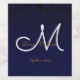 Elegant Dark Navy Blue Gold White Monogram Floral Weinetikett