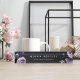Personalisieren Sie diese elegante Schreibtischnamensplatte mit Ihrem Namen oder Firmennamen, um eine kundenspezifische Ergänzung zu Ihrem Büro zu erhalten. Das Design besteht aus Haufen indigoblauer Rose und lila Blume, die an jeder Ecke auf einem dunklen und dramatischen Hintergrund zu sehen sind. Fügen Sie Ihren Namen und Firmennamen oder Titel in der modernen weißen Schrift hinzu.