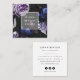 Das elegante viereckige Design der Visitenkarte zeichnet sich durch ein Muster aus blasser Lavendel lila Rose und tiefblaue indigoblaue Pfannkugeln auf einem dunklen und dramatischen Hintergrund aus. Fügen Sie Ihren Namen oder Firmennamen in modernen weißen Schriftzeichen, überlagert auf einem schieren Platz in der Mitte. Personalisieren Sie die Rückseite mit Ihren Kontaktinformationen. Enthält drei soziale Medien-Icons und ein Feld für Ihren Benutzernamen; um zusätzliche Optionen für Social Media-Icons zu enthüllen, öffnen Sie das Design-Tool und entdecken Sie die zusätzlichen Optionen.