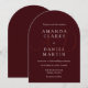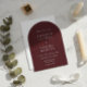 Elevate your wedding day with this deep burgundy arch wedding invitation, designed for couples who love timeless elegance with a modern edge. Featuring a classic arch silhouette in rich, deep burgundy — the jewel tone of the season — this design includes personalized couple initials as a sophisticated watermark in the background, adding a luxurious monogram touch without overwhelming the clean layout.
