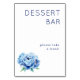 This is a minimalist style image featuring an elegant invitation to a dessert bar. The design showcases the words "DESSERT BAR" in bold, navy blue letters at the top, followed by a charming request, "please take a treat!" in smaller font below. A delicate illustration of soft blue peonies adds a touch of sophistication and freshness to the composition. The overall mood is inviting and refined, perfect for enhancing any event with a sweet ending.