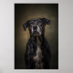 A stunning studio portrait of a dog illuminated with dramatic Rembrandt lighting. This elegant composition gives the image a timeless, noble quality, making it perfect for pet lovers and interior art collections.