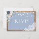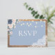 Elegant Dusty Blue Blush Rustic Wood Lace Script RSVP Karte