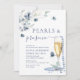 Elegant Dusty Blue Boho Winter PEARLS & Prosecco Einladung