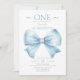 Elegant Dusty Blue Bow First Boy Birthday Einladung