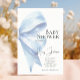 Elegant Dusty Blue Bow Watercolor Baby Shower Boy Einladung