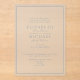 Die elegante Dusty Blue Classic Script Wedding Invitation erobert das Wesen der schlichten Eleganz mit ihrer delikaten Mischung aus staubigen blauen Tönen und zeitloser Typografie. Das Hotel ist für Paare gedacht, die Eleganz schätzen, und das Set mit seinem raffinierten Schriftart und den zarten blauen Rahmen ist ein Ort der Ruhe und Romantik, der perfekt für eine Hochzeitsfeier geeignet ist, die Schönheit mit Anmut verbindet. Dieses Design ist jetzt in einem klaren oder mattierten Acryl erhältlich und zeichnet sich durch eine neue Dimension aus. Es zeichnet sich durch eine moderne, elegante Oberfläche aus, die den zeitlosen Reiz des Objektes noch verstärkt. Das vielseitige Acryl fügt eine helle Touch hinzu, die perfekt ist, um Ihre Einladungen so unvergesslich wie die Momente, die sie feiern, zu machen. Wählen Sie aus 15 oder 40 ml Stärke. Für weitere Personalisierungen stehen Ihnen passende Produkte, Farbvarianten oder individuelle Gestaltungsanpassungen zur Verfügung, die Ihre Feier noch unvergesslicher machen. Copyright Anastasia Surridge, alle Rechte vorbehalten.