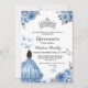 Bewundern Sie den Zauber Ihrer Quinceañera mit unserer exquisiten Dusty Blue Floral Einladung, die mit zarten Schmetterlingen und einem königlichen Kronmotiv geschmückt ist.staubblaue Sets sorgen für den perfekten Ton.