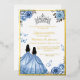 Treten Sie ein in die Welt der zeitlosen Eleganz und des anmutigen Charmes mit unserem Dusty Blue Floral Quinceañera Invitation.verziert mit zarten Blumenakzenten in sanften Farbtönen von staubblauem Blau, die an einen ruhigen Garten in voller Blüte erinnern.