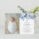 Elegant Dusty Blue Floral Custom Picture Baptisse Einladung