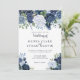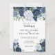 Eine elegante Einladung mit Ihren Hochzeitsdetails, umgeben von prächtigen Blüten in den Tönen Blau, Weiß und reiche Marine. Die Karte kehrt zu einem warmen staubigen Blau mit einem kleinen Bouquet in der Mitte zurück. Sie können Ihre eigene spezielle Nachricht hinzufügen und den Stil des Schriftartes ändern, indem Sie im Menü "Anpassen" die Option wählen. Diese Einladung ist Teil einer wunderschönen, passenden Hochzeitssuite, die vollständig personalisiert sein kann.