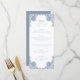 Elegantes dustiges blaues Hochzeitsmenü mit dustigem blühenden Spitzen. Matching-Elemente verfügbar. Dieses dustig blaue Hochzeitsmenü lässt sich leicht mit Ihren Hochzeitsdetails kombinieren.