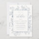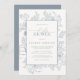 Elegant Dusty Blue Floral Line Art Babydusche Einladung