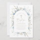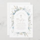 Elegant Dusty Blue Floral mit Script-Taufe Einladung