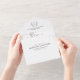 Elegant Dusty Blue Floral Wappen Monogram Wedding All In One Einladung