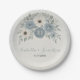 Bring your wedding theme to the reception with these elegant dusty blue floral paper plates. Designed with soft blue blooms and a wax seal motif, they elevate any dessert or cocktail table with understated sophistication.
