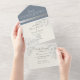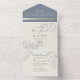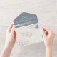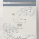 Elegante, staubblaue Hochzeitseinladung mit romantischer Vintager Blumenzeilenkunst und minimalistischer Typografie. Umfasst UAWG und Platz für Hochzeitsmahlzeiten. Eine raffinierte Wahl für Winterhochzeiten oder Paare, die einen sanften botanischen Look mit zeitlosem Charme suchen. Bitte beachten Sie: Diese Einladung erfordert einen separaten Briefumschlag.