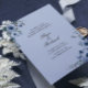 Elegante Hochzeitseinladung mit staubigen blauen Blumen. Personalisieren Sie Ihre Hochzeitsdetails.