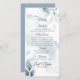 Hochzeitsprogramm | Elegantes dusty Blue Foliage Hochzeitsmenü . Design erstellt für die BarefootBride™ durch © WhimsicalArtwork™ Anpassen Sie Text, Schriftart Stil, Farbe und Größe. Wir haben diese Vorlage erstellt, um es Ihnen leicht zu machen, mit Ihren eigenen Informationen zu personalisieren. Dies ist Teil unserer Hochzeitskollektion "Watercolor Dusty Blue Foliage"