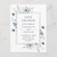 Elegante blaue Foliage Hochzeit speichern Sie das Datum Postkarte.