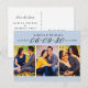 Diese stilvolle Hochzeit speichern das Datum Ankündigung Postkarten enthalten drei 2 x 3" Verlobungen Fotos mit dem Datum in der Schrift enthalten. Personalisieren Sie die Kartenvorlagenformulierung auf der Vorder- und Rückseite der Postkarte für Ihren großen Tag. Der blau/pulvergrau-blaue Hintergrund und die schwarze Textfarbe können individuell auf Ihr Hochzeitsfarbschema abgestimmt werden.